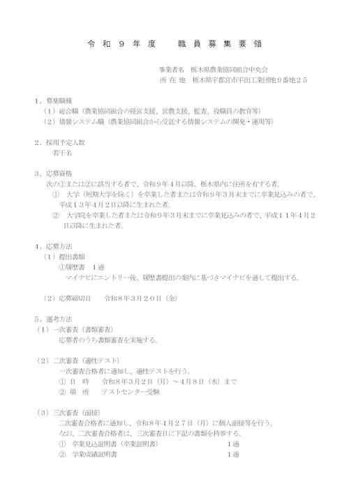 ただいま「総合職」、「情報システム職」を募集しています。マイナビからエントリーのうえ、ご応募ください。 エントリーいただくと2月12日以降マイナビより履歴書をお送りします。 (応募締切:令和8年3月20日(金))